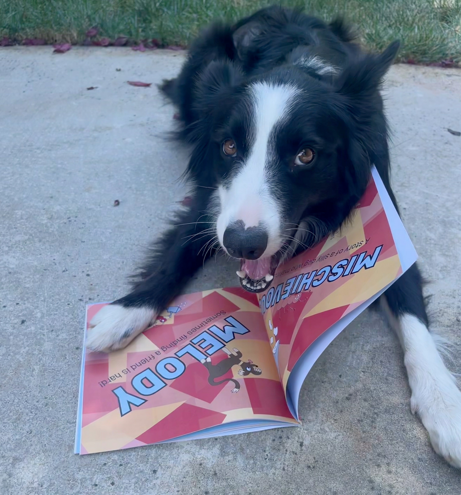 This is the goofball who was the inspiration for the book "Mischievous Melody," the silly dog featured in the story! Melody licks the dishes in the sink, opens doors, and stares at ants, occasionally swatting them to see if they will roll over!